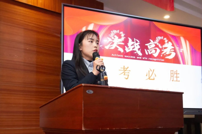 胡麗婷代表全體教師教授高三學子的必勝“秘訣”,告誡他們在未來的一百天里,要有“黃沙百戰(zhàn)穿金甲,不破樓蘭終不還”的決心,要有“會當擊水三千里,人生自信二百年”的信心,還要有“回首向來蕭瑟處,也無風雨也無晴”的平常心。