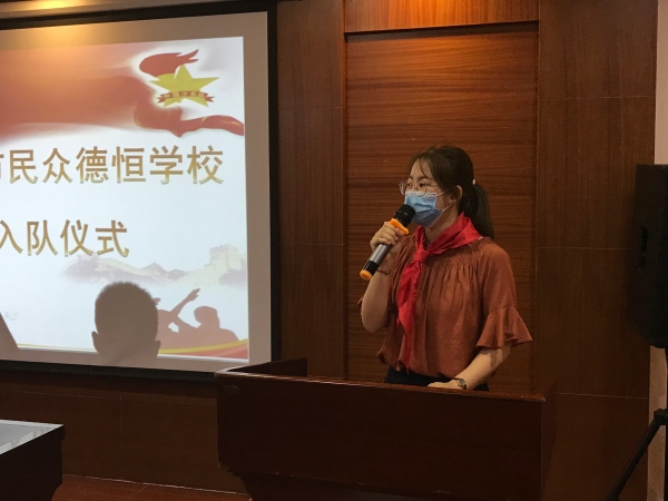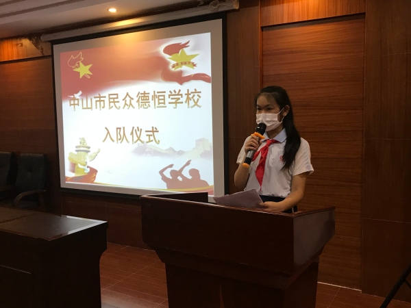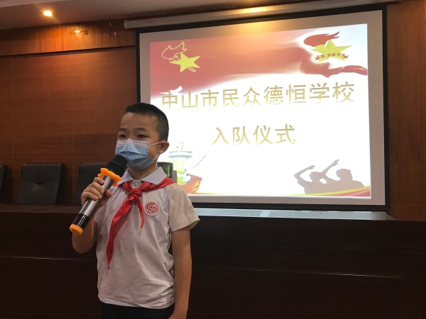 6月17日,陽光明媚,微風(fēng)習(xí)習(xí),上午九點整,中山市民眾德恒學(xué)校少先隊大隊部在校大會議室隆重舉行了一年級新隊員的入隊儀式。