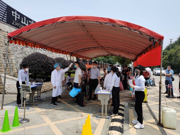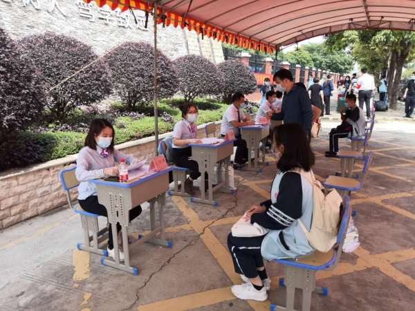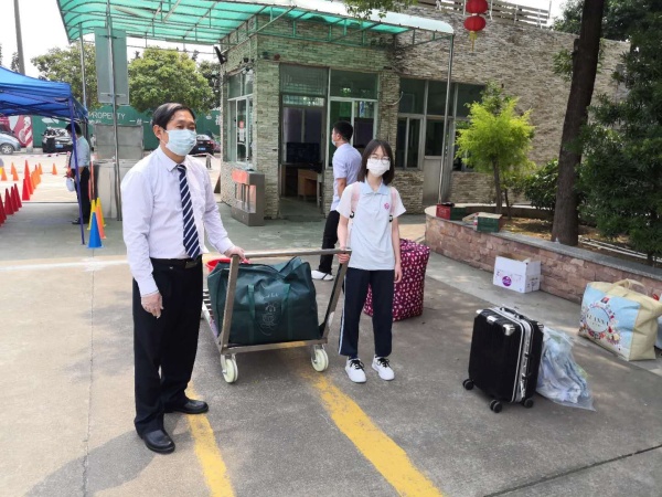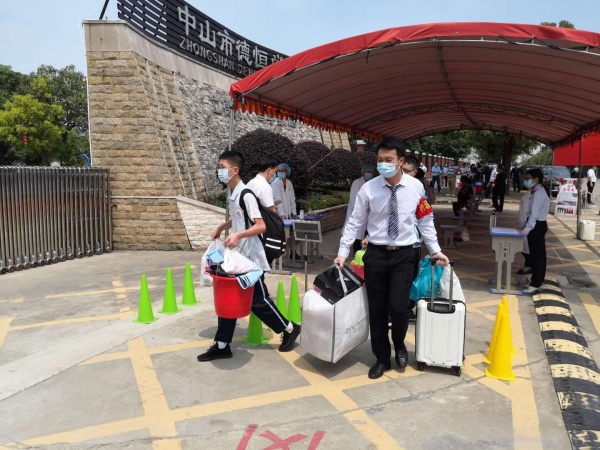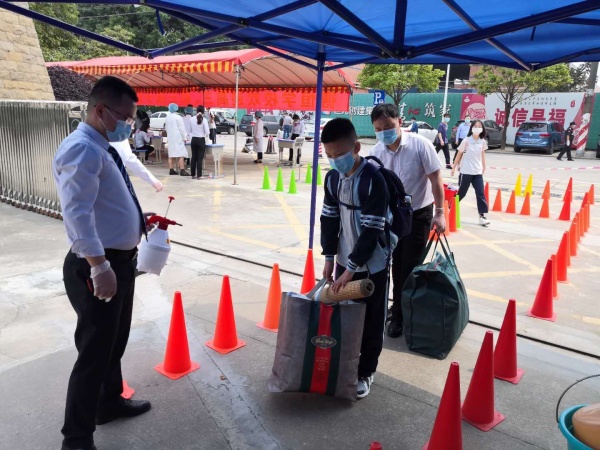 為了使初三和高三學(xué)生錯(cuò)峰返校,學(xué)校將初三學(xué)生的返校報(bào)到時(shí)間定為下午13時(shí)到15時(shí),但中午12時(shí)30分左右,已經(jīng)可以看到有零星的返校心情較為急切的學(xué)生和家長(zhǎng)拖著行李在校門口周邊立等,而此時(shí),負(fù)責(zé)相關(guān)工作的老師尤其是班主任們也已經(jīng)開始緊鑼密鼓的準(zhǔn)備。