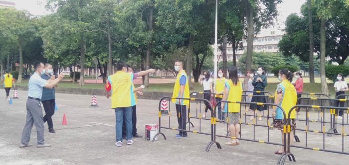 為了更好地應(yīng)對(duì)可能產(chǎn)生人群密集的各項(xiàng)活動(dòng),使相關(guān)人員熟悉應(yīng)急處置內(nèi)容和流程,讓開(kāi)學(xué)后校園防疫、教學(xué)、生活等各項(xiàng)工作的開(kāi)展更順暢。根據(jù)上級(jí)要求,民眾中學(xué)8月26日上午舉行防疫期間應(yīng)急演練活動(dòng)。