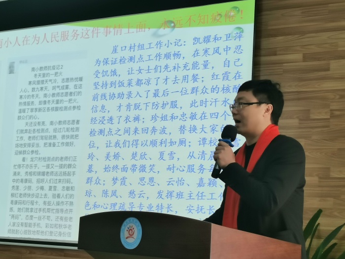 座談會上,五位新教師和十位行政互相認(rèn)識。各個部門主管領(lǐng)導(dǎo)明確本部門的工作要點(diǎn)、工作要求。教學(xué)上,在備課、改作業(yè)、測試等常規(guī)工作作了詳細(xì)說明;班主任工作方面,在防疫、班級管理、家校聯(lián)系等方面提出了具體要求。最后陳校長勉勵新教師們在南小之家,愉快生活,認(rèn)真工作,與學(xué)生一起成長!