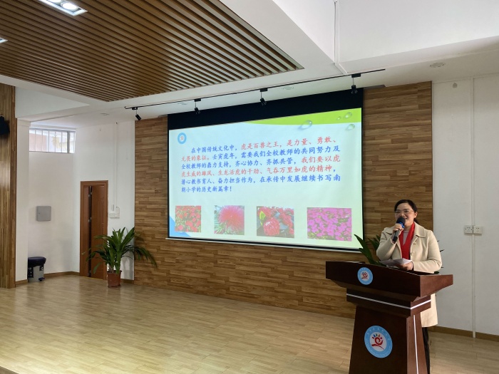 2月12日上午,在階梯室召開全體教師會議,陳敏華校長帶領(lǐng)全體行政團(tuán)體向大家致以新年的祝福。在喜慶熱鬧的氛圍中,大家認(rèn)識了本學(xué)期加入南小大家庭的5位新成員。陳敏華校長總結(jié)上學(xué)期學(xué)校教育教學(xué)工作,組織全體教師學(xué)習(xí)新學(xué)期工作計(jì)劃。