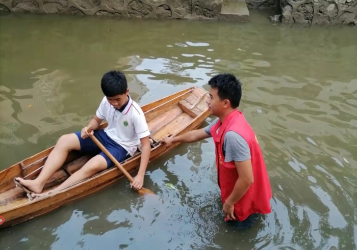 研學(xué)活動(dòng)中,同學(xué)們還在會(huì)長(zhǎng)和隊(duì)員們的保護(hù)下在河道中體驗(yàn)了單人農(nóng)艇扒行,親身感受這一具有歷史和文化價(jià)值的運(yùn)動(dòng)。