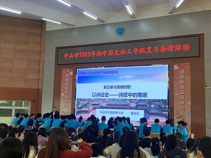 為了加強(qiáng)教師對新中考的研究,提升初三歷史課的復(fù)習(xí)效率,2月28日上午,中山市2023年初中歷史初三年級復(fù)習(xí)備考活動在大南中學(xué)舉行,中山市歷史教研員劉剛老師,東莞市歷史教研員胡波老師,中山市初中歷史中心教研組成員和各初級中學(xué)(初中部)初三備考組長出席了此次活動,牛角中學(xué)全體歷史老師參加了活動。