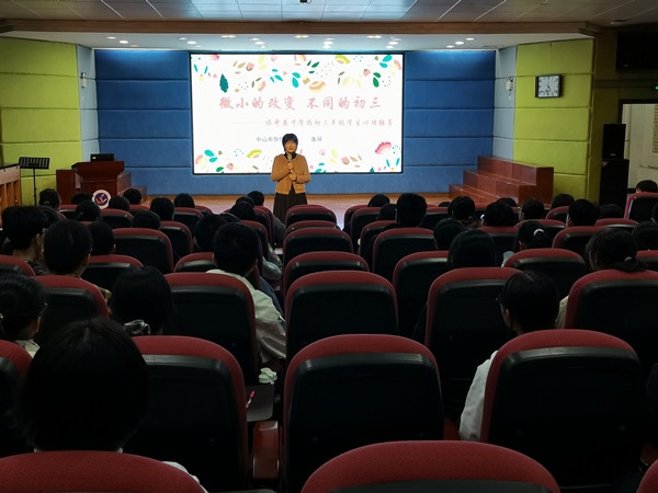 為舒緩初三學子的學習壓力,僑中英才學校邀請了中學心理高級教師、中山市心理健康教育教研組副組長、中山市華僑中學名師工作室主持人張環(huán)老師,于12月24日下午在學校多功能廳為初三畢業(yè)班全體學生開展心理輔導講座。