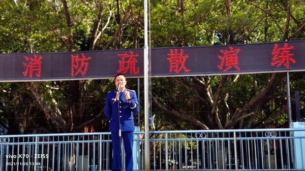 為強(qiáng)化學(xué)校師生的安全意識(shí),掌握消防應(yīng)急疏散知識(shí),提高應(yīng)急疏散和自救自護(hù)能力,根據(jù)僑中英才學(xué)校消防安全月工作安排,11月26日下午開(kāi)展了消防應(yīng)急疏散演練活動(dòng)。英才學(xué)校消防副校長(zhǎng)、中山市消防救援支隊(duì)城區(qū)大隊(duì)許廣龍參謀進(jìn)行現(xiàn)場(chǎng)指導(dǎo)。