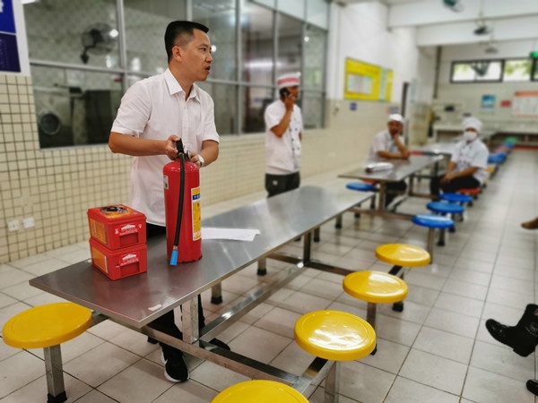 學(xué)生食堂內(nèi)部各種用火、用電、用油設(shè)備較多,是學(xué)校安全防火的重點部門。對食堂工作人員進行消防安全培訓(xùn)、消防安全演練是學(xué)校安全工作計劃的一項重要內(nèi)容,把消防安全知識培訓(xùn)作為一項必不可少的內(nèi)容納入到新員工崗前培訓(xùn)課程,不斷增強工作人員消防安全意識,提高消防安全技能,切實擔(dān)負(fù)起消防安全責(zé)任,杜絕消防安全事故的發(fā)生,為師生的工作、學(xué)習(xí)、生活保駕護航。
