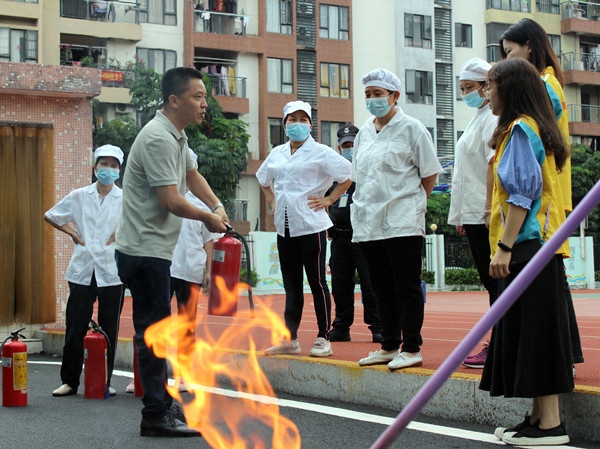 演練結(jié)束后,黃強(qiáng)助理為學(xué)校重點(diǎn)崗位人員、新入職教職工進(jìn)行滅火器、室內(nèi)消防栓操作培訓(xùn)。黃助理現(xiàn)場講解消防器材的構(gòu)造、使用方法和注意事項(xiàng),并現(xiàn)場示范滅火器實(shí)操知識(shí)技能,教職人員現(xiàn)場模仿演練,動(dòng)手操作、親身體驗(yàn),在遇到火災(zāi)時(shí)能夠正確使用消防器材。