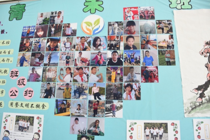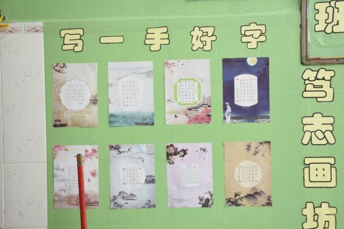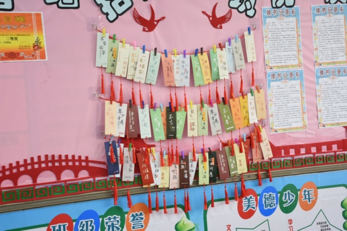 3.各班班主任還非常注重教室文化建設(shè),充分利用教室資源,力求每一面墻都會(huì)“說(shuō)話(huà)”,讓每個(gè)角落都富有教育意義。每個(gè)班級(jí)發(fā)揮班主任及學(xué)生的智慧,精心設(shè)計(jì)、巧妙布置,力求教室和諧、高雅,具有濃厚的綠色、和諧,彰顯文明溫馨的文化氣息,有的教室的兩側(cè)墻壁上掛了不少名人名言,以時(shí)時(shí)規(guī)范孩子行為,處處讓孩子接受知識(shí)熏陶的同時(shí),讓孩子們學(xué)會(huì)做事做人。教室的后面黑板有宣傳欄、班級(jí)公務(wù)欄等,主要用于張貼課程表、作息時(shí)間表、值日輪流表等。黑板報(bào)上的內(nèi)容根據(jù)不同注意和一些重要節(jié)日實(shí)時(shí)更新。不同的板塊都在記錄著孩子們成長(zhǎng)的點(diǎn)滴,如美術(shù)、手抄版、書(shū)法等作品。有的板塊張貼著老師與孩子們的合照,下面書(shū)寫(xiě)著班級(jí)的名稱(chēng)、口號(hào)和座右銘,那是師生一起追求夢(mèng)想的見(jiàn)證。也有班級(jí)創(chuàng)建了光榮榜,為了讓孩子們有一種健康的競(jìng)爭(zhēng)意識(shí),見(jiàn)賢思齊,并激發(fā)孩子們的學(xué)習(xí)熱情。