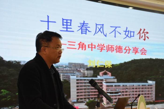 三角中學(xué)第一期師德講座由劉仁保老師以題為《十里春風(fēng)不如你》進(jìn)行分享。他那感人肺腑的故事,聲情并茂的講述,充分展示了劉老師高度的責(zé)任心和高尚的職業(yè)操守。他用一生踐行自己的諾言——用愛(ài)和責(zé)任守住學(xué)生眼中的光——讓探索與行動(dòng)陪伴生命,用生命影響生命、陪伴生命,讓生命慢慢成長(zhǎng)。同時(shí),劉老師從守著“你”,潛心向?qū)W、愛(ài)著“你”,揚(yáng)帆啟航、伴著“你”,奮楫篤行三個(gè)方面分享他工作以來(lái)的心路歷程,分享了他在教學(xué)工作中如何享受幸福、實(shí)現(xiàn)自己的人生價(jià)值的方法,他用發(fā)人深省的故事、鮮活生動(dòng)的案例,深入淺出地詮釋了做人做事做學(xué)問(wèn)的真諦,他那無(wú)私奉獻(xiàn)的精神、澎湃的激情感染了在座的所有教師。