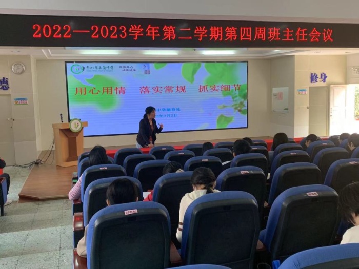 會(huì)議伊始,德育處主任何志楊跟大家回顧了班主任工作中的亮點(diǎn),肯定了班主任工作的辛勤付出。同時(shí)指出班主任的地位和任務(wù)是非常重要的,更要提高自己的素養(yǎng),做好學(xué)生的引路人,并針對(duì)班級(jí)管理中需要提升的地方給大家做了梳理,從班級(jí)管理、宿舍管理、衛(wèi)生情況、安全教育、心理健康、家校共育等多個(gè)方面強(qiáng)調(diào)了班主任工作細(xì)心、高效的重要性。最后,何主任耐心引導(dǎo),希望大家都要努力去做一根會(huì)思考的蘆葦,做一名善于思考的老師,徜徉于德育的快樂(lè)中。