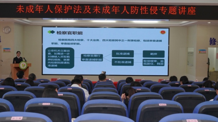 會議的第一項議程,由中山市第二市區(qū)人民檢察院鄧艷檢察官以“檢校共建防護網(wǎng),護航青春不停步”為題進行未成年人保護法及未成年人防性侵專題講座。講座上,鄧檢察官從性侵害離我們的校園遠(yuǎn)嗎?性侵害的法律適用、性侵害的預(yù)防和應(yīng)對三個方面引入,并通過明確的數(shù)據(jù),清晰的圖表和具體的案例重點講解了校園安全隱患、強奸罪、強制猥褻、侮辱罪、猥褻兒童罪和表現(xiàn)形式、如何預(yù)防、發(fā)現(xiàn)、應(yīng)對未成年人性侵害案件等方面,她指出從預(yù)防的角度看,主要有兩個方面,加強校園安全管理和落實防性侵法治教育。在應(yīng)對措施方面,鄧檢察官以“一號檢察建議”為切入點,圍繞2020年5月7日最高檢等九部門聯(lián)合印發(fā)的《關(guān)于建立侵害未成年人案件強制報告制度的意見(試行)》,結(jié)合《中華人民共和國刑法》等法律,通過觀看視頻、學(xué)習(xí)典型案例等方式,生動形象地宣講了強制報告制度的出臺背景、報告主體、應(yīng)報情形、如何報告及追責(zé)機制等內(nèi)容,并對教育工作中如何貫徹落實強制報告制度進行重點解讀,幫助教職工更好的理解強制報告制度的重要意義和執(zhí)行必要,讓學(xué)校教師明確自身職責(zé),明確新時代教師職業(yè)規(guī)范和師德底線。鄧檢察官細(xì)致的講解讓在場的老師們對《未成年人保護法》和預(yù)防未成年人性侵有了更加深入的了解。