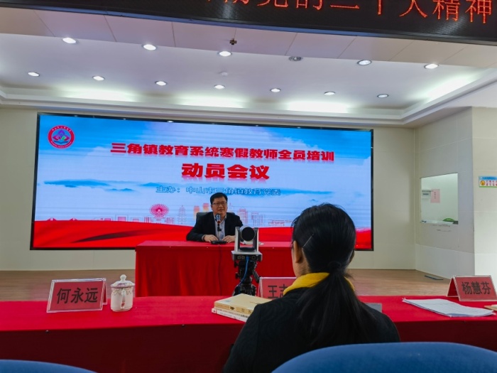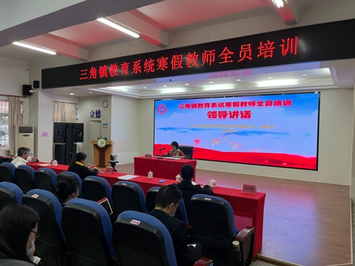 為進一步貫徹黨的教育方針,更好地提升全鎮(zhèn)中小學(xué)教師的專業(yè)發(fā)展水平及師德修養(yǎng),使之適應(yīng)新形勢的發(fā)展,提升教師職業(yè)道德素養(yǎng),強化育人使命感和責(zé)任感,全面推進素質(zhì)教育,提高教育教學(xué)質(zhì)量。2023年2月3日下午,三角鎮(zhèn)在三角中學(xué)報告廳(主會場)召開三角鎮(zhèn)教育系統(tǒng)寒假教師全員培訓(xùn)動員會議。三角鎮(zhèn)黨委副書記何永遠(yuǎn)、鎮(zhèn)教體局領(lǐng)導(dǎo)、鎮(zhèn)教體中心全體人員、三角中學(xué)教師在主會場參加本次培訓(xùn)動員大會,其他學(xué)校教師在本校分會場,通過視頻直播方式參加會議。會議由楊慧芬局長主持。