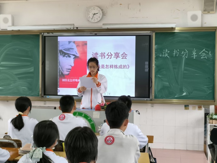 八年級各班同學代表分享的是名著《鋼鐵是怎樣煉成的》,他們用心感悟,用獨特的語言與視角去解讀心目中對于名著《鋼鐵是怎樣煉成的》的閱讀感受,同學們通過走近主人公保爾?柯察金,認識保爾,從他的人生歷程以及鋼鐵般的精神中,汲取奮發(fā)向上的成長力量。