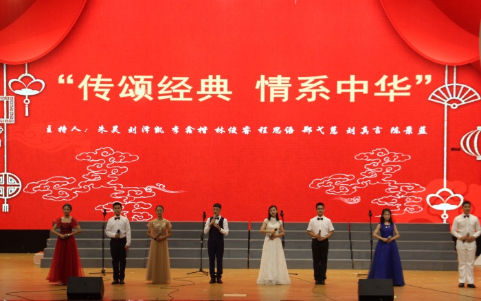 遨游浩渺的詩海,在文字的錦繡里穿行,在聲韻的河川里徜徉。同學(xué)們賦以朗誦全新的表演形式,用飽滿的誦讀情感,鮮亮整齊的服飾,富有感染力的舞臺(tái)設(shè)計(jì),將拳拳愛國心,深深赤子情與當(dāng)代學(xué)生的青春和激情表現(xiàn)得淋漓盡致,深深感染了現(xiàn)場(chǎng)的所有評(píng)委和觀眾,贏得了大家熱烈的掌聲。