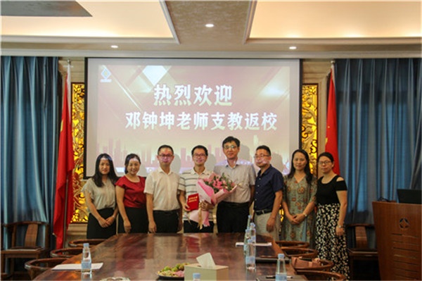 一束鮮花,一張榮譽證書,一場簡單而不失誠意的歡迎儀式于7月16日在中山市紀中三鑫雙語學校行政樓會議室舉行。這場歡迎儀式的主人公是三鑫小學部的鄧鐘坤老師。2020年6月9日,按照黨中央國務院、廣東云南兩省省委省政府的部署安排,為進一步鞏固中山市三鄉(xiāng)鎮(zhèn)對口綏江扶貧協(xié)作工作成果,三鑫學校發(fā)出綏江支教通知。通知一發(fā)出就收到鄧鐘坤等十幾名老師積極報名,經(jīng)學校研究決定,鄧鐘坤作為2020年春季中山東區(qū)組團赴綏江支教的一員前往綏江支教。7月15日,鄧老師支教歸來,三鑫校辦副主任賀敏攜鄧老師所在年級老師代表前往市區(qū)迎接鄧老師的歸來,并于7月16日為鄧老師舉辦了簡單的歡迎儀式。