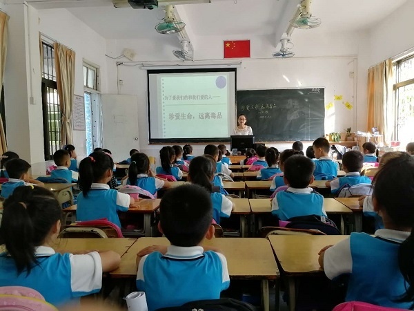 每年的6月26日是禁毒日,為了更有效地防止學(xué)生吸毒等違法犯罪行為的發(fā)生,增強同學(xué)們遠離毒品、積極參與禁毒活動的意識,中山市申明亭學(xué)校各班開展了“珍愛生命”主題班會活動。