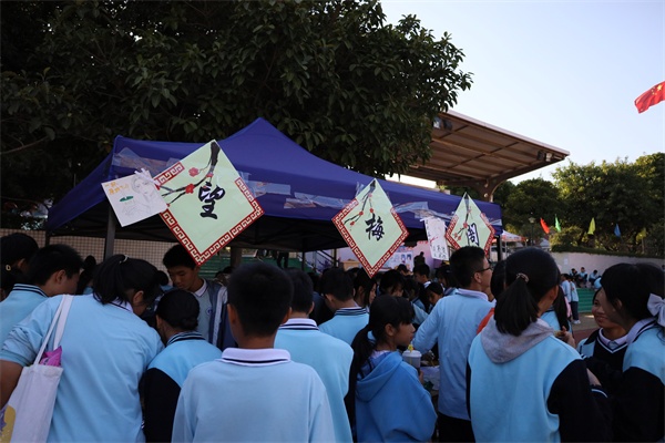 本次活動(dòng)一共設(shè)置25個(gè)攤位,分為兩個(gè)年級(jí),初一年級(jí)主要營銷精品,初二年級(jí)主要營銷食品。這次活動(dòng)全體師生積極參與,不少熱心家長也到場支持。下午的陽光格外明媚,整個(gè)田徑場成了一個(gè)熱鬧的大集市。各班在攤位布置、氣氛營造、商品出售諸方面都絞盡腦汁,吸引客流。