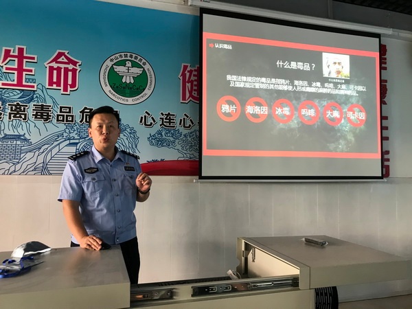禁毒宣講活動分為兩部分,沙溪鎮(zhèn)公安分局葉雍赟警官為師生們做專題講座。葉警官從當前世界和中國緝毒、毒品的發(fā)展和毒品危害等方面,分別從毒品的種類、危害和抵御方面向師生介紹。結合實踐辦理涉及毒品危害的典型案例,深入剖析青少年吸食毒品的心理、危害等,讓學生充分認識了毒品的危害,自覺堅決抵制毒品,鼓勵同學們學習禁毒知識,向家長和其他同學傳播禁毒知識。