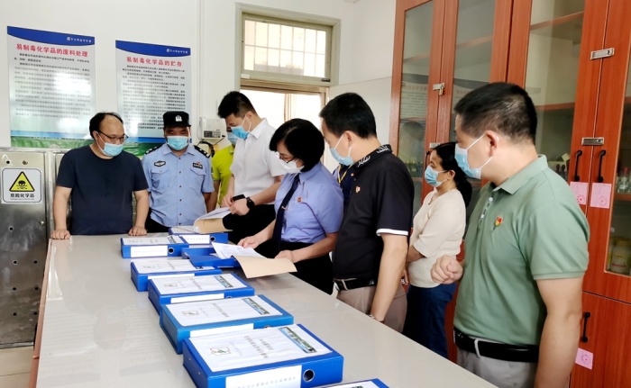 首先,由永寧中學(xué)黨支部書記陳清茂校長等行政干部的帶領(lǐng)下,調(diào)研組實地考察了永寧中學(xué)化學(xué)實驗室、學(xué)校禁毒教育基地,全面深入了解永寧中學(xué)開展毒品預(yù)防教育、易制毒化學(xué)品管理等禁毒工作落實情況。同時,梁金秀副檢察長在現(xiàn)場向永寧中學(xué)禁毒教育基地贈送《青少年防毒禁毒教育讀本》等三本禁毒書籍。