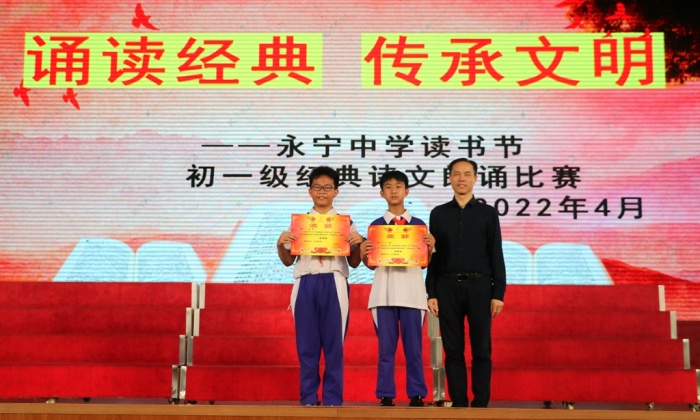 書籍,是人類寶貴的精神財(cái)富;閱讀,與我們相伴一生。以閱讀長知識(shí),以閱讀促養(yǎng)成,以閱讀樹理想,以閱讀育人格。為了形成“人人愛讀書,經(jīng)典來育人”的書香校園氛圍,4月8日下午,永寧中學(xué)在學(xué)校體育館舉行“誦讀經(jīng)典,傳承文明”朗誦比賽。陳清茂校長、陳華梁副校長、龍小紅主任、戴放良主任、羅結(jié)晶副主任等學(xué)校領(lǐng)導(dǎo)出席了比賽活動(dòng),初一年級(jí)全體師生參加了朗誦活動(dòng)。