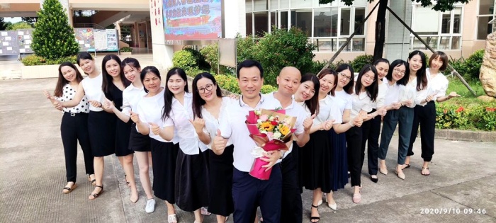 金秋九月,碩果芬芳,空氣中彌漫著感恩的氣氛。在這個洋溢著豐收喜悅的季節(jié)里,永寧中學(xué)全體師生懷著激動和喜悅的心情迎來了第36 個教師節(jié)。慶?;顒釉趯W(xué)生代表向全體教師獻花中拉開帷幕,永寧中學(xué)黨支部書記、校長陳清茂同志宣讀了表彰決定,蔡栩月等53位老師分別獲得市級、鎮(zhèn)級、校級等多項榮譽,獲獎老師身披禮儀帶上臺接受了頒獎。陳清茂校長在講話中表示:“在2019-2020學(xué)年度,永寧中學(xué)全體教職員工在習(xí)近平新時代中國特色社會主義思想的指引下,立德樹人,認(rèn)真踐行社會主義核心價值觀,緊緊圍繞學(xué)校教育事業(yè)發(fā)展五年規(guī)劃努力工作。老師們以強烈的事業(yè)心和飽滿的工作熱情,在疫情防控工作中迎難而上,堅持奮戰(zhàn)在抗擊疫情和停課不停學(xué)、不停教兩條戰(zhàn)線上,用愛心和智慧點亮了學(xué)生的人生夢想,彰顯了永中老師的高尚師德與責(zé)任擔(dān)當(dāng)?!倍虝憾≈氐幕顒咏Y(jié)束后,全體師生又立刻投入到緊張的教育教學(xué)活動中去。