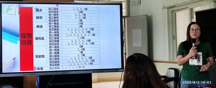 接著,教務(wù)處龍主任對(duì)上學(xué)期各科成績(jī)進(jìn)行了小結(jié),對(duì)各位科組長(zhǎng)備課組長(zhǎng)所做出的努力和成績(jī)進(jìn)行了肯定,在座的都是學(xué)校的管理和教學(xué)骨干,是學(xué)校的中堅(jiān)力量、教育教學(xué)的精英,有了大家的共同奮斗,才取得了好的教育教學(xué)成績(jī)。各位對(duì)學(xué)校的發(fā)展、一學(xué)期的付出表示感謝。為了讓學(xué)校的發(fā)展更加充滿生機(jī)和活力,也希望大家要一如既往的努力,帶領(lǐng)全校教師認(rèn)真學(xué)習(xí),潛心任教,引領(lǐng)更多的老師成長(zhǎng),讓更多的學(xué)生成才,力爭(zhēng)在教育教學(xué)上取得更大的成績(jī),為學(xué)校的良好發(fā)展奠定堅(jiān)實(shí)的基礎(chǔ)。接著,她從備課組層面對(duì)全校上學(xué)期的學(xué)科成績(jī)進(jìn)行全面分析,從A率B率、AB率排名及得分入手分析了三個(gè)年級(jí)各學(xué)科的情況,從中得出了“霸氣備課組”、“潛力無(wú)限備課組”、“后勁十足備課組”及“強(qiáng)勢(shì)班級(jí)”。同時(shí)又指出了各科組備課組工作需要改善的地方。接著,龍主任就新學(xué)期的教育教學(xué)工作做了部署,以規(guī)范辦學(xué)為指針,以科技教育為特色,認(rèn)真落實(shí)國(guó)家課程方案,全面推進(jìn)素質(zhì)教育,深入開(kāi)展“分層教學(xué)”、“初一年級(jí)小步子嘗試走班教學(xué)”、“A、B班輔導(dǎo)”等教學(xué)活動(dòng),全面落實(shí)“目標(biāo)成績(jī)管理”,以教學(xué)常規(guī)管理為底線,以課堂教學(xué)、教師隊(duì)伍建設(shè)為基本點(diǎn),以教師學(xué)科知識(shí)建構(gòu)為抓手,進(jìn)一步更新教師教學(xué)理念,加強(qiáng)教育教學(xué)研究,深化課堂改革和聽(tīng)課制度,切實(shí)提高教師的業(yè)務(wù)水平,繼續(xù)抓好老教師上示范課,使教學(xué)質(zhì)量穩(wěn)步提高。她強(qiáng)調(diào)各科組長(zhǎng)要做好領(lǐng)頭人的工作,充分發(fā)揮科組長(zhǎng)的作用,要切實(shí)地關(guān)注新教師的成長(zhǎng),把學(xué)校的教學(xué)工作和教學(xué)成績(jī)推上一個(gè)新臺(tái)階。