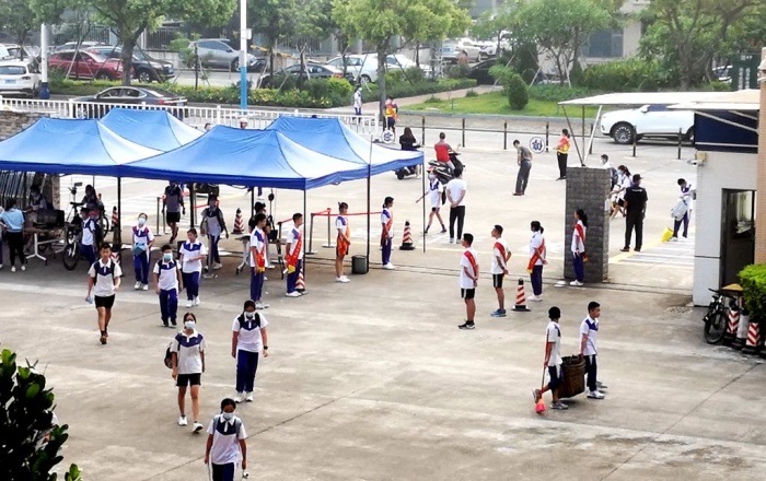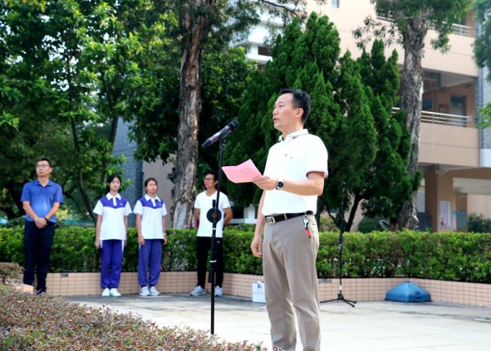 接著,陳校長緊扣國家教育方針、疫情防控要求和中山創(chuàng)建全國文明城市契機(jī),強(qiáng)調(diào)學(xué)校師生要堅(jiān)持疫情防控常態(tài)化,堅(jiān)持高標(biāo)準(zhǔn)開展教育教學(xué)活動(dòng),高標(biāo)準(zhǔn)落實(shí)“創(chuàng)文”的教育活動(dòng)和宣傳工作,圍繞著“勞動(dòng)”、“健康”、“文明”和“愛國”四個(gè)關(guān)鍵詞,表達(dá)了對永中師生的殷切希望: