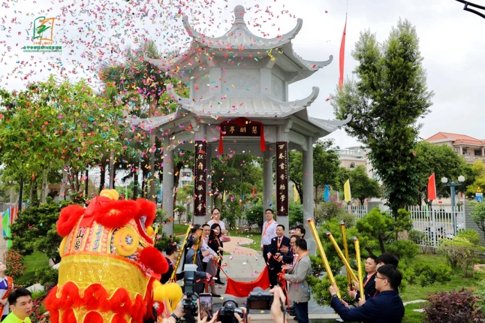 慧明亭揭幕儀式。為紀(jì)念50周年校慶,繼承永中優(yōu)良傳統(tǒng),美麗的校園內(nèi)新建了名為“慧明亭”的兩層石雕紀(jì)念亭,彰顯厚重歷史,成為了校園文化建設(shè)的新地標(biāo)之一。在眾多嘉賓和師生的見證下、在禮炮聲中揭開了慧明亭神秘的匾聯(lián),但見駱培華校友親筆題寫的楹聯(lián)“萬卷書香貽學(xué)子,千秋偉業(yè)振中華”,寓意深遠(yuǎn)!