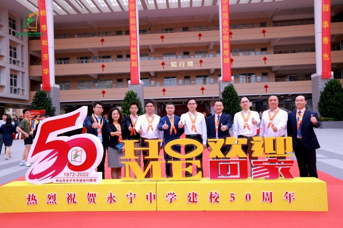 “風(fēng)雨兼程勇毅前行矢志育桃李,披荊斬棘踔厲奮發(fā)齊心創(chuàng)輝煌。”3月19日上午,中山市永寧中學(xué)隆重舉行50周年華誕慶典活動(dòng)。校園花團(tuán)錦簇,彩旗飄揚(yáng),鑼鼓喧天,人頭攢動(dòng),成了一片歡樂的海洋。中山市教育和體育局副局長(zhǎng)姜術(shù)俊、小欖鎮(zhèn)黨委書記趙錫雄、小欖鎮(zhèn)黨委副書記全國(guó)、小欖鎮(zhèn)黨委委員梁銳強(qiáng)、副鎮(zhèn)長(zhǎng)司徒兆宙等市、鎮(zhèn)領(lǐng)導(dǎo)和嘉賓,以及永寧社區(qū)領(lǐng)導(dǎo)、捐贈(zèng)企業(yè)代表和社會(huì)熱心人士、小欖鎮(zhèn)中小學(xué)、幼兒園校長(zhǎng)(園長(zhǎng))、離退休教師、曾在永寧中學(xué)工作過的老師們、各屆校友代表、永中家委會(huì)和家長(zhǎng)代表等近1500人出席了慶典活動(dòng)。