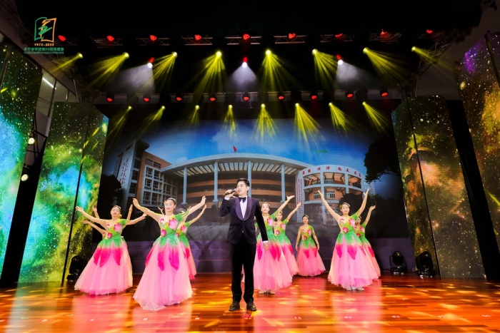 接著,永寧社區(qū)黨委書記、校慶籌委會(huì)主任伍錦華致辭,伍書記代表籌委會(huì)介紹了一年來極不尋常、極不平凡卻又極富成效的校慶籌備工作,介紹了捐贈(zèng)情況以及校園文化軟硬件環(huán)境升級(jí)改造實(shí)現(xiàn)的目標(biāo),并代表永寧社區(qū)黨委、居委會(huì)衷心感謝永中校友、社區(qū)鄉(xiāng)賢、熱心企業(yè)的身體力行、團(tuán)結(jié)奮斗實(shí)現(xiàn)宏偉藍(lán)圖的大愛,感謝市鎮(zhèn)領(lǐng)導(dǎo)的關(guān)懷。祝愿永寧中學(xué)明天會(huì)更好,鑄就新輝煌!校友代表、校慶籌委會(huì)顧問駱建華在致辭中回顧了在母校求學(xué)的美好記憶,難忘老師的教誨之恩,讓其在簡(jiǎn)陋的學(xué)習(xí)環(huán)境中,不畏艱難、嚴(yán)謹(jǐn)助學(xué)、發(fā)奮努力、立志成才。他敬祝母校賡續(xù)輝煌、桃李芬芳,恭祝老師青春永駐、幸福安康,祝愿同學(xué)們各呈異彩、擁抱明天!梁銳強(qiáng)委員對(duì)永寧中學(xué)五十周年校慶表示熱烈祝賀,對(duì)學(xué)校五十年來的辦學(xué)成就表示肯定和贊賞,并鼓勵(lì)全體教職工繼續(xù)牢記初心使命,開拓創(chuàng)新,把永寧中學(xué)建設(shè)成為一個(gè)素質(zhì)教育的楷模、人才輩出的搖籃、崇尚創(chuàng)新的典范。