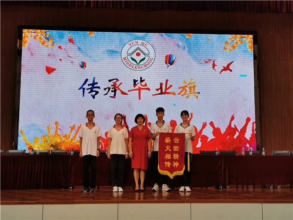 嚴(yán)、勤、創(chuàng)、美,云衢精神,薪火相傳,代代不息。彭柳芳校長(zhǎng)與初三代表葉思齊、林鈺榆同學(xué)及初二代表劉鈺昕、譚嘉寶同學(xué)傳承畢業(yè)旗。當(dāng)初二同學(xué)代表接過(guò)畢業(yè)旗時(shí),現(xiàn)場(chǎng)的師生家長(zhǎng)再一次被深深感動(dòng)。已走過(guò)211年風(fēng)雨歲月的云衢中學(xué)弦歌不輟,它就像一棵參天大樹(shù),歷經(jīng)歲月而愈發(fā)根深葉茂?!皭?ài)的教育”是云衢中學(xué)踐行多年的辦學(xué)特色,2020屆畢業(yè)生在離校前夕自發(fā)踴躍為母校捐出愛(ài)心款,總數(shù)達(dá)到19680.25元。