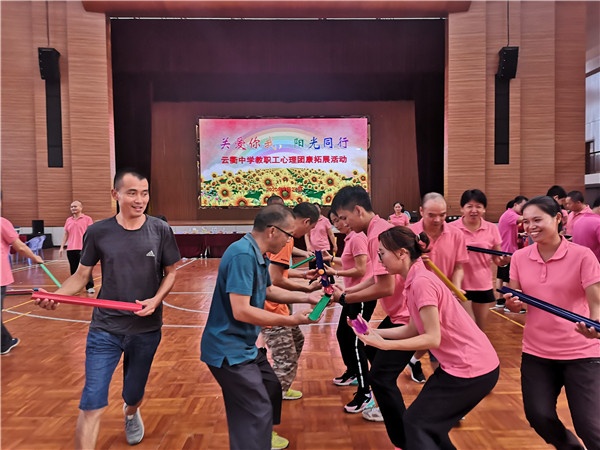 活動(dòng)的第三環(huán)節(jié),由工會(huì)和心理組開展教師團(tuán)康活動(dòng)。教職工積極參與“拍拍操”“珠行萬里”“搭橋過河”等趣味活動(dòng),齊心協(xié)力完成挑戰(zhàn)。活動(dòng)不僅使教職工放松了心情,豐富了業(yè)余生活,同時(shí)也增進(jìn)了同事之間的感情,舒緩了緊張的工作壓力。
