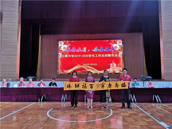 為總結(jié)本學(xué)年學(xué)校教育教學(xué)工作,提升教職工團(tuán)隊(duì)的幸福感和凝聚力,7月24日下午,云衢中學(xué)全體教職工集中藝體中心,舉行2019-2020學(xué)年工作總結(jié)暨歡送會(huì)及教職工團(tuán)康活動(dòng),活動(dòng)由盧均源主任和崔麗燕老師主持。