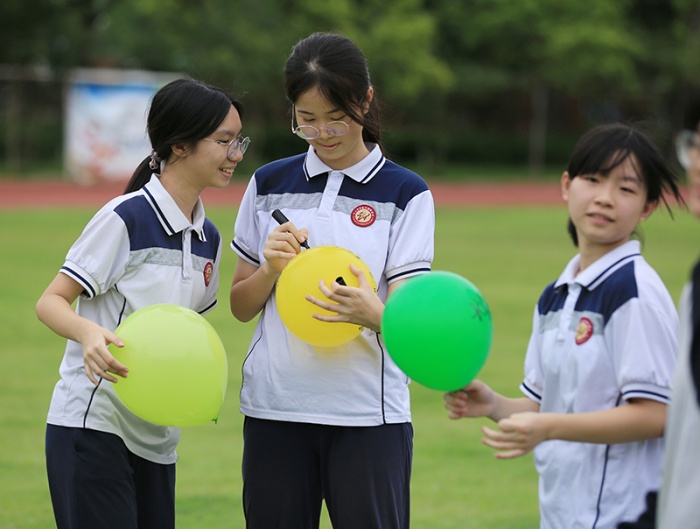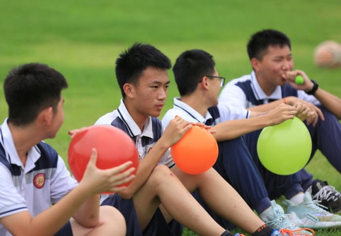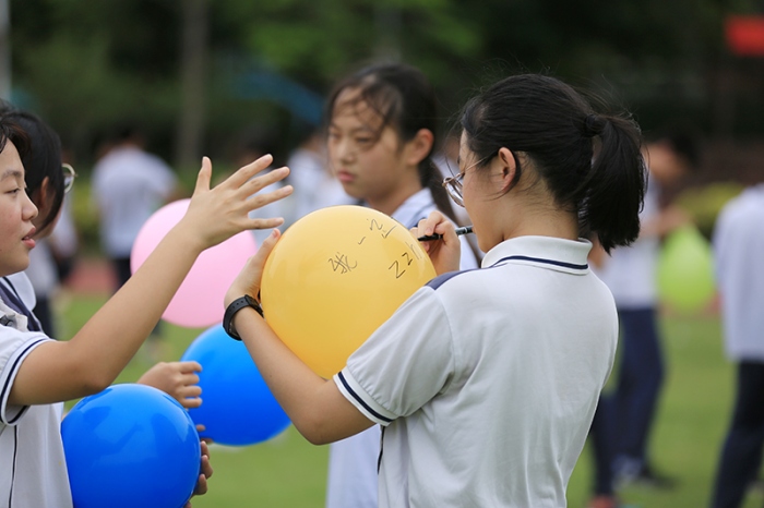 “中考沒(méi)什么大不了,我行!我一定行!”“沒(méi)關(guān)系,盡力就好?!薄芭Τ蔀楹隈R?!薄皦毫Υ蟊ā庇螒蛑校瑢W(xué)們給氣球吹氣,然后在氣球上寫(xiě)下自己的壓力或困惑,最后捏爆氣球,讓壓力伴隨著氣球一起炸開(kāi)。同學(xué)們有的用腳踩,有的拿手捏,有的直接吹爆,還有的互相協(xié)作,通過(guò)擁抱擠爆氣球……