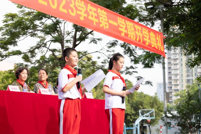 “迎著九月的朝陽,踏著秋日的晨風,懷著無比激動的心情回到了美麗的卓雅外校,新的學期,作為一個小學生,如何成為家里的好孩子,學校的好隊員,社會的好少年呢?”小學部校長李園萍在致辭中希望同學們在黨的領導下,在祖國的呵護下,踔厲奮發(fā),爭當愛國好少年、爭當健康好少年、爭當勤學好少年、爭當科學好少年、爭當勞動好少年。