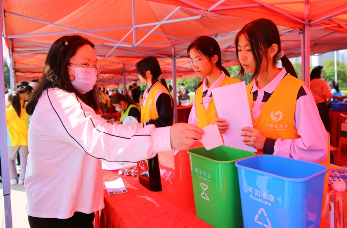 卓雅外校團(tuán)委書記李凌霄擔(dān)任此次活動(dòng)的主持人,她介紹說,3月5日是第60個(gè)學(xué)雷鋒紀(jì)念日,組織學(xué)生志愿者在便民服務(wù)攤位協(xié)助開展“垃圾分類”、“美麗河涌”志愿服務(wù),是為了讓同學(xué)們以實(shí)際行動(dòng)學(xué)習(xí)和踐行雷鋒精神,弘揚(yáng)志愿精神,豐富志愿服務(wù)形式,增強(qiáng)青年團(tuán)員的貢獻(xiàn)意識(shí)。
