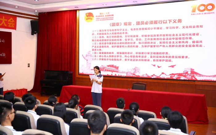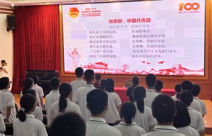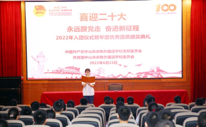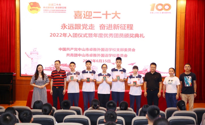 為貫徹落實(shí)習(xí)近平總書記在慶祝中國共產(chǎn)主義青年團(tuán)成立100周年大會上的重要講話精神,聚焦抓好黨的事業(yè)后繼有人這個(gè)根本大計(jì),6月15日晚,卓雅外校舉行共青團(tuán)入團(tuán)儀式暨優(yōu)秀團(tuán)員表彰大會,胡蓉、李鈺妍等44名同學(xué)加入中國共產(chǎn)主義青年團(tuán),張家盈、周江涵等44名優(yōu)秀團(tuán)員受表彰。