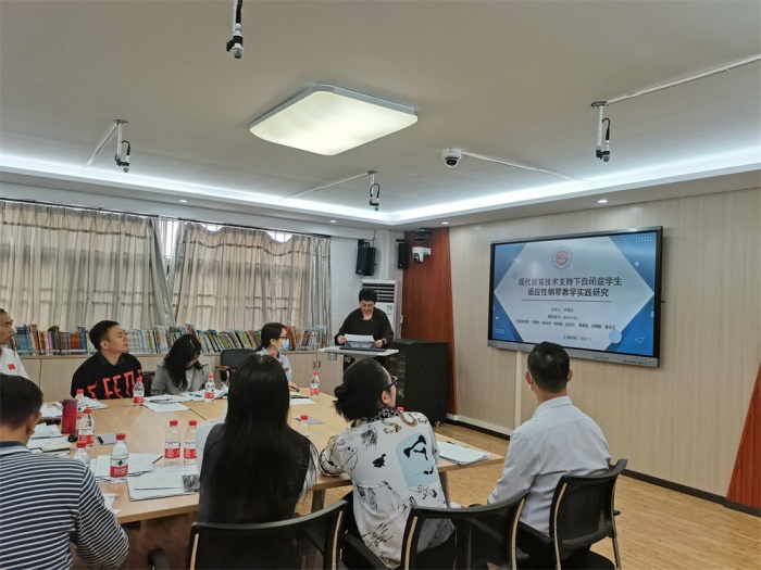 于姍永老師邏輯嚴謹地對盧超文校長主持的市級立項的《現代教育技術支持下自閉癥學生適應性鋼琴教學實踐研究》進行開題匯報,此研究目的在于探索與實踐現代化教育技術支持下自閉癥學生的適應性鋼琴教學,從而建構出現代教育技術支持體系以及自閉癥學生的適應性鋼琴教學體系。專家組高度肯定了此課題研究的切入點,認為該研究具有重要的理論意義與實踐價值,研究設計規(guī)范、邏輯嚴密,研究方向明確,研究的具體實施過程清晰,具有很強的研究可行性。并進一步建議梳理提煉現代化教育技術支持下自閉癥學生適應性鋼琴實踐過程中個別化的具體研究目標,明確現代化教育技術支持內容的具體選擇以及組合方式。