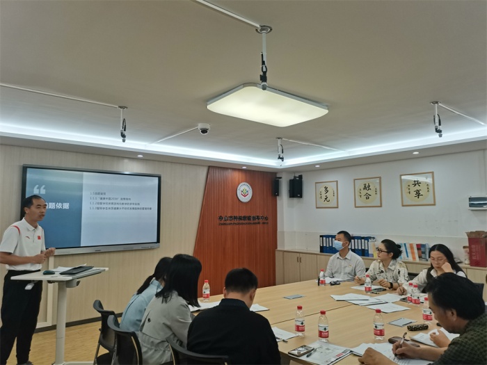 春風送暖日,教研花正開。3月23日上午,中山特校2022年度省市教育科研開題活動火熱開展。本次活動邀請到中山市教體局原教研室副主任、廣東省課程與教學專業(yè)委員會常務理事陳春艷,廣東省特級教師、全國優(yōu)秀教師、全國經典誦讀百佳校長陳麗,中山市教師發(fā)展中心高級講師、三名工程管理辦公室主任周立勝等三位評議專家,為特??蒲泄ぷ髦更c迷津、智慧引航。參與人員濟濟一堂,有:中山特校盧超文校長、陳云華副校長、李園林副校長以及教研室、教務處、德育處相關行政;中山特校2022年度省市教育科研五個課題的主持人及其課題組成員;云浮市特殊教育學校、梅州市蕉嶺縣特殊教育學校、汕尾市城區(qū)特殊教育學校的跟崗交流教師,以及中山特校部分教師代表。