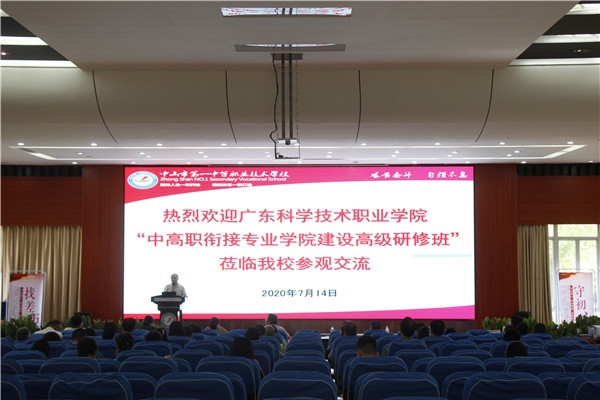7月 14日下午,在廣東科學技術(shù)職業(yè)學院繼續(xù)教育學院院長袁曉斌帶領(lǐng)下,繼續(xù)教育學院辦公室主任李穎玲,成教部副主任莊玉紅、胡軍,中高職銜接專業(yè)學院建設(shè)高級研修班全體學員等一行50余人到中山一職考察交流,中山一職校領(lǐng)導、學部部長、各專業(yè)負責人、產(chǎn)學研基地負責老師、創(chuàng)客一條街負責老師陪同參觀并參加座談。