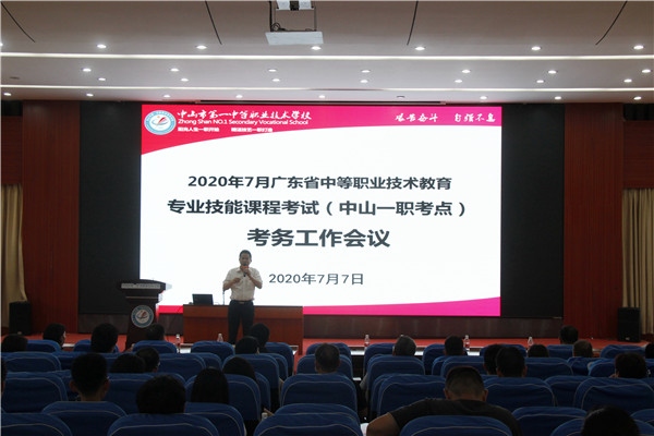 為了更好地傳達(dá)2020年7月廣東省中等職業(yè)技術(shù)教育專業(yè)技能課程考試考務(wù)工作會(huì)議精神,做好中山市第一職業(yè)技術(shù)學(xué)??键c(diǎn)考務(wù)工作,落實(shí)本次考試考務(wù)工作安排與要求,7月7日下午,中山一職在大會(huì)議室召開了考務(wù)會(huì)議。會(huì)議由中山一職考點(diǎn)考務(wù)組組長(zhǎng)何彩梅副主任主持,主考龍衛(wèi)平校長(zhǎng)、副主考章利建副校長(zhǎng)、潘理理衛(wèi)生副校長(zhǎng)、蔡權(quán)副主任、外校領(lǐng)隊(duì)、全體考務(wù)工作人員及監(jiān)考老師參加了會(huì)議。