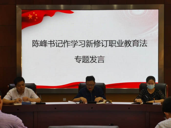 本次會(huì)議的第一議題學(xué)習(xí),是由校黨委委員郭哲領(lǐng)學(xué)《習(xí)近平總書(shū)記在慶祝中國(guó)共產(chǎn)主義青年團(tuán)成立100周年大會(huì)重要講話》。接著由校黨委書(shū)記陳峰作學(xué)習(xí)新《職業(yè)教育法》的專(zhuān)題發(fā)言。陳峰書(shū)記首先帶大家一起回顧了新《職業(yè)教育法》產(chǎn)生的歷史背景和時(shí)代意義,接著對(duì)新法的主要內(nèi)容和突出亮點(diǎn)做了介紹,并指出學(xué)校當(dāng)下進(jìn)行的在“多元適性”育人模式下,通過(guò)“適性素養(yǎng)、適才課程、適生課堂、適崗教師、適美校園、適眾治理”六個(gè)方面建立學(xué)校品牌,樹(shù)立學(xué)校形象,創(chuàng)新人才培養(yǎng)等各項(xiàng)工作,就是就新法的探索和實(shí)踐。陳峰書(shū)記重點(diǎn)與大家分享了新《職業(yè)教育法》對(duì)學(xué)校工作的啟示。他說(shuō),在《職教法》修訂頒布的大背景下,結(jié)合學(xué)?!岸嘣m性”育人模式,和“雙高”建設(shè)的工作重點(diǎn),要通過(guò)體制創(chuàng)新,系統(tǒng)設(shè)計(jì),發(fā)揮一校三區(qū)優(yōu)勢(shì),整合校內(nèi)和企業(yè)資源做到四點(diǎn),一是堅(jiān)定不移地加大技能教育宣傳力度,優(yōu)化技能人才成長(zhǎng)環(huán)境,培育全社會(huì)重視技能教育、尊重技能人才的良好社會(huì)氛圍,把握好“內(nèi)修外聯(lián),行穩(wěn)致遠(yuǎn)”行動(dòng)準(zhǔn)則;二是堅(jiān)定不移地以就業(yè)為導(dǎo)向,大力促進(jìn)產(chǎn)教融合,著力推動(dòng)一體化教學(xué)改革,形成有中專(zhuān)特色的職業(yè)教育教學(xué)體系;三是堅(jiān)定不移地走學(xué)制教育與職業(yè)培訓(xùn)并舉的路子,充分發(fā)揮我們的職業(yè)優(yōu)勢(shì),服務(wù)中山乃至大灣區(qū)產(chǎn)業(yè),服務(wù)大就業(yè);四是堅(jiān)定不移地抓好強(qiáng)師工程,持續(xù)推動(dòng)教育質(zhì)量穩(wěn)步提升。最后,各黨委委員和教務(wù)處、校企合作處、創(chuàng)意設(shè)計(jì)部負(fù)責(zé)人分別分享了學(xué)習(xí)體會(huì)。