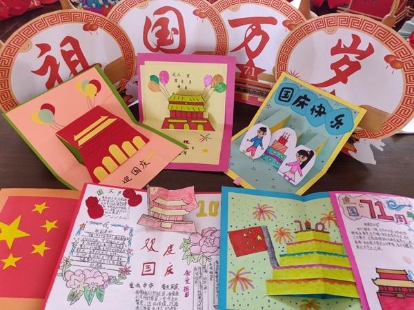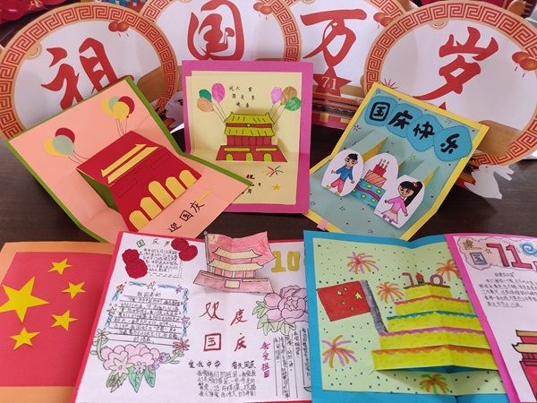 此次活動,從“燈籠傳情”、“賀卡寄思”以及“黑板報抒情”三方面展開。親手制作的燈籠,親筆書寫的賀卡,親自繪制的黑板報不僅寄托著中秋情思,還洋溢著濃厚喜慶氛圍。瞧!一個個卷紙芯、一副副舊掛歷,一個個使用過的利是封,通過高平學子的奇思妙想以及巧手的粘貼接拼,搖身一變,成為獨一無二的“藝術品”。造型各異的燈籠各具特色,將校園裝扮得格外喜慶。品!一張張滿懷深情的心意賀卡,是高平學子發(fā)自內心對祖國母親的謳歌,堅信祖國會豪邁地走向繁榮富強???!各班級黑板報主題鮮明,構思新穎,選材精心,內容充實。用炫彩的粉筆,描繪出一幅幅精美的板報畫面,表達著對中秋佳節(jié)和祖國母親的生日祝福。