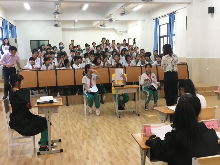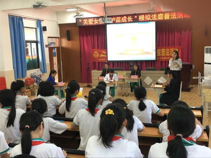 為進(jìn)一步增強(qiáng)女童自我保護(hù)意識(shí),提升女童自我保護(hù)能力,依法維護(hù)女童合法權(quán)益,促進(jìn)女童安全健康成長(zhǎng)。10月26日下午,由中山市三角鎮(zhèn)婦聯(lián)組織,廣東國(guó)融律師事務(wù)所承辦的“模擬法庭”普法活動(dòng)在三角鎮(zhèn)沙欄小學(xué)正式拉開(kāi)帷幕。此次模擬法庭,開(kāi)庭審理的是一件涉及性侵的犯罪案例。學(xué)生們分別扮演“審判員、書(shū)記員、公訴人、辯護(hù)人、法定代理人、法警”等角色,親身經(jīng)歷了一場(chǎng)別開(kāi)生面的庭審現(xiàn)場(chǎng)。參與庭審的同學(xué)們積極認(rèn)真,將整個(gè)庭審過(guò)程中的每一個(gè)角色都演繹得惟妙惟俏,真實(shí)生動(dòng)地再現(xiàn)了莊嚴(yán)的庭審過(guò)程,讓五六年級(jí)的女同學(xué)能近距離地感受法律的莊嚴(yán)神圣。