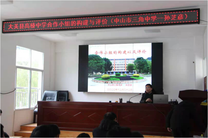 歲末寒冬,為響應(yīng)東西部扶貧協(xié)作教育幫扶政策,本著對(duì)教育的摯愛(ài)、懷著對(duì)山區(qū)教育幫扶的熱情,受中山市三角鎮(zhèn)教體文旅局的派遣,中山市三角中學(xué)孫芝彥副校長(zhǎng)、楊慶新主任和羅福波老師赴云南省昭通市大關(guān)縣開(kāi)展支教活動(dòng)。三位老師到昭通之后,服從安排,以助力教師成長(zhǎng)為己任,代表學(xué)校與幫扶學(xué)校建立一種長(zhǎng)期溝通的合作關(guān)系。毫不保留地把經(jīng)驗(yàn)帶給對(duì)口幫扶學(xué)校,積極傳遞教育正能力,不忘初心,不辱使命,圓滿完成任務(wù)。
