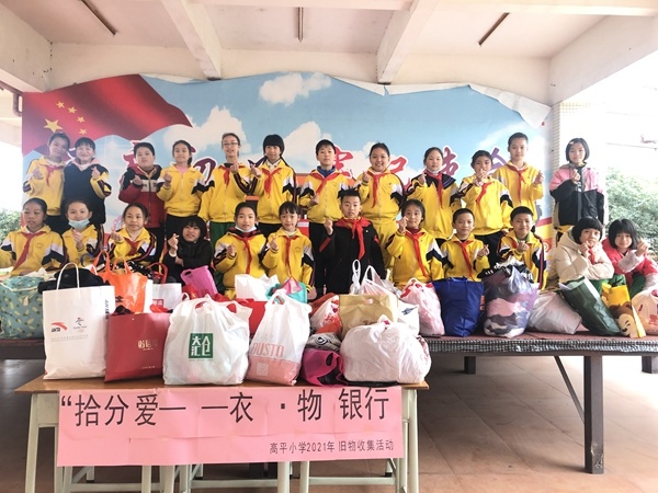 為倡導(dǎo)公益環(huán)保理念,實現(xiàn)資源再利用,同時,結(jié)合中山市對口支援工作,以捐贈舊物幫助貧困區(qū)兒童添衣添物的志愿服務(wù)為載體,引領(lǐng)廣大小學生做力所能及的環(huán)保行動,高平小學于2020年12月30日至2021年1月4日開展“拾分愛——衣·物銀行”活動。