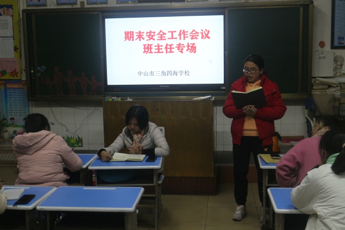 臨近期末考試,學(xué)校各項(xiàng)工作進(jìn)入關(guān)鍵的收官階段,學(xué)生的教育管理,特別是安全管理工作進(jìn)入了一個(gè)非常重要的敏感期。為了有序推進(jìn)期末階段各項(xiàng)工作,尤其是把安全工作落到實(shí)處,四海學(xué)校于1月4日下午分部門召開了期末安全工作會(huì)議。