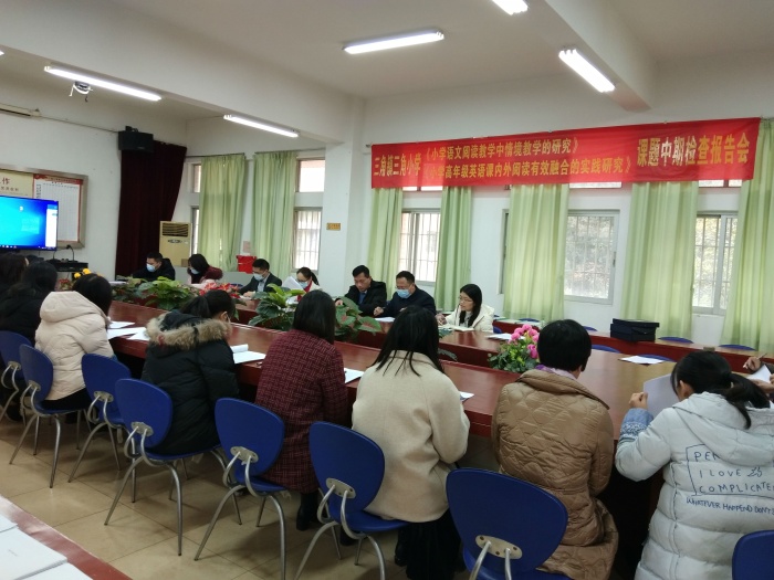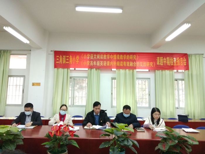 冬日是結(jié)蕾的季節(jié),更是充滿期待的時分。1月8日上午,三角小學(xué)鎮(zhèn)級課題“小學(xué)語文閱讀教學(xué)中情境教學(xué)的研究”和“小學(xué)高年級英語課內(nèi)外閱讀有效融合的實踐研究”中期報告會在三角鎮(zhèn)三角小學(xué)會議室舉行,三角鎮(zhèn)教育和體育事務(wù)中心梁文副主任和吳萍老師蒞臨指導(dǎo),陳見洪校長、王輝副校長等行政,以及課題組全體成員參加了會議。