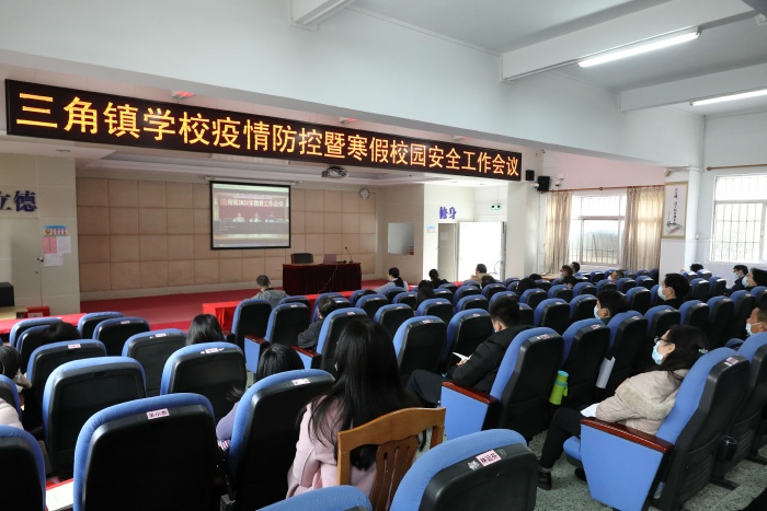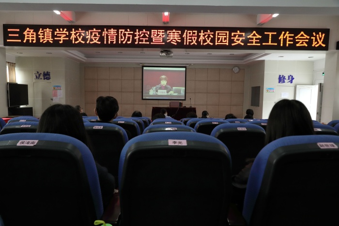 為進一步落實寒假期間校園疫情防控及寒假校園安全工作,根據(jù)省市有關(guān)通知要求,2021年1月5日,下午,三角鎮(zhèn)召開全鎮(zhèn)學校學校疫情防控暨寒假校園安全工作會議。會議主會場設(shè)在三角中學報告廳,全鎮(zhèn)其他中小學校設(shè)有分會場,三角鎮(zhèn)領(lǐng)導、教體中心人員、各中小學教師參加了會議。